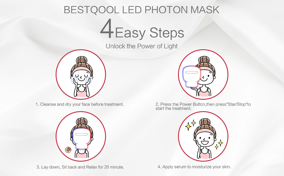 MULTIFUNCTIONAL PHOTOTHERAPY MASK:LED face mask light therapy provides you the 3 most effective lights to treat a myriad of skin problems, this safe and natural treatment can help the common skin problems in 20mins every day.